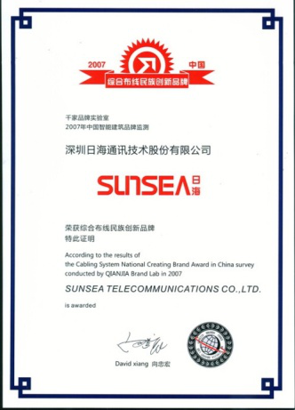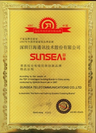2007年11月29日~30日,南宫NG·28公司智能综合布线受邀前往上海光大会展中心酒店,参加由千家网筹办的“2007年第八届中国国际建筑智能化峰会暨颁奖典礼”,获得了“布线民族创新品牌”特别奖项。